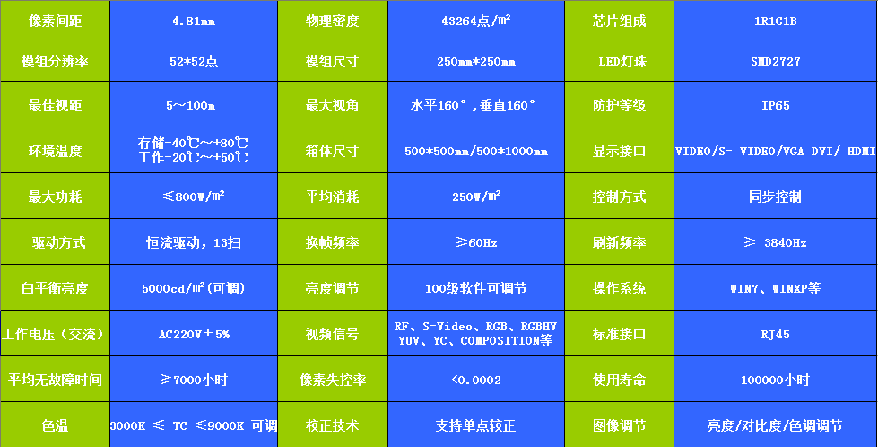 P4.81户外租赁显示屏,是目前市场上主流的租赁产品,显示效果好,价格实惠,性价比高,产品稳定,适合各种户外舞台搭建。采用500*500或500**1000的压铸铝箱体,高刷驱动,美观大方,精确度高,能够实现无逢拼装,搭建简单快速安全,转场方便。